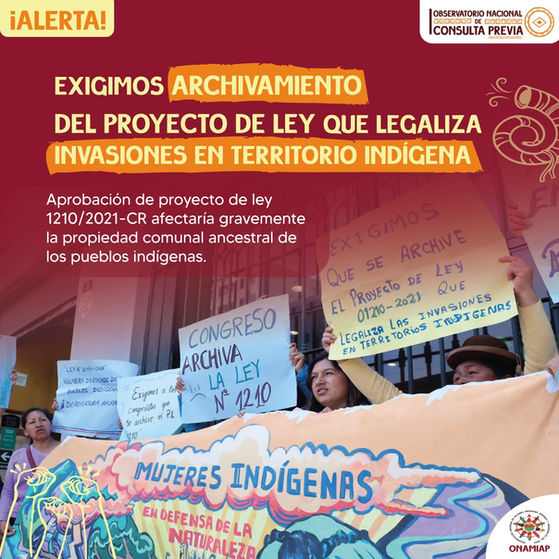 ONAMIAP presenta información ante entidades nacionales y organismos internacionales de protección de derechos humanos para denunciar la vulneración de los derechos individuales y colectivos de los pueblos indígenas, en específico de los derechos a la libre determinación, consulta y consentimiento previo, libre e informado; con el objeto de visibilizar estas vulneraciones sistemáticas y revertir su continuidad.